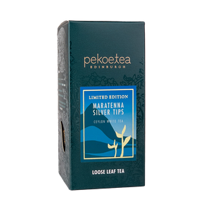 We are delighted to introduce to our PekoeTea collection this fantastic limited edition white tea from Sri Lanka. Delicate, handmade Maratenna Ceylon Silver Tips is a beautifully refreshing and relaxing white tea. It comes from the Maratenna Tea Garden, which borders the tropical rain forests of the Peak Wilderness Sanctuary in Sri Lanka. Maratenna Silver Tips has a satisfying subtle sweet mouthfeel and a floral citric aroma with a hint of tropical fruit flavour.
