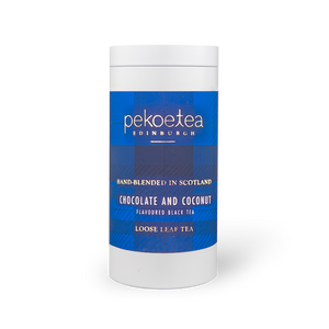 Chocolate and Coconut is a rich blend with real vegan coconut milk chocolate chips, vegan white chocolate chips, cacao nibs and coconut flakes. Our Chocolate and Coconut Black Tea is an indulgent treat with a smooth, creamy flavour.Producing a tea blend this chocolatey was not an easy task..... It involved consuming many bars of chocolate and cups of hot chocolate to make something this good.