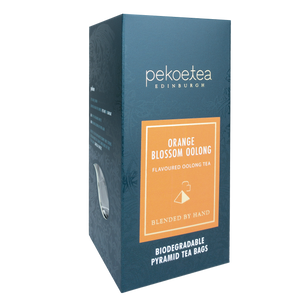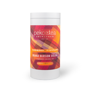 Our Orange Blossom Oolong is a rich dark oolong perfect for warming up in cold weather. The aroma will leave others wondering what's in your cup with its delicate orange and caramel flavours. It goes well with morning toast and marmalade. Orange Blossom Oolong also makes a refreshing iced tea or cold infusion. We hand-craft this tea in our Edinburgh factory using the finest Taiwanese oolong teas, orange blossoms and natural flavourings.